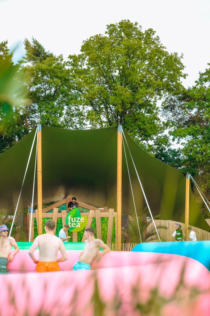 De zon zat wat verstopt, het water was fris en de sfeer zat er meteen goed in! Vandaag zetten drie jonge talenten van Stressfactor: DXNO, DILUCA en DJ FLOW de toon voor een spetterend festivalweekend met hun set op de Fuze Tea Pool Party op Sunfield Camping, het officiële kampeerterrein van Sunrise Festival.